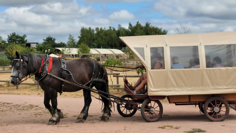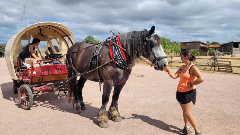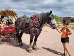 « A notre arrivée une calèche nous attendait. Conduite par Filou (cheval de 10 ans), nous avons fait un tour de Montpeyroux roulant « cahin caha » sur les chemins. De retour à la ferme, nous sommes allés à la rencontre des animaux en nous baladant d’un enclos à l’autre.