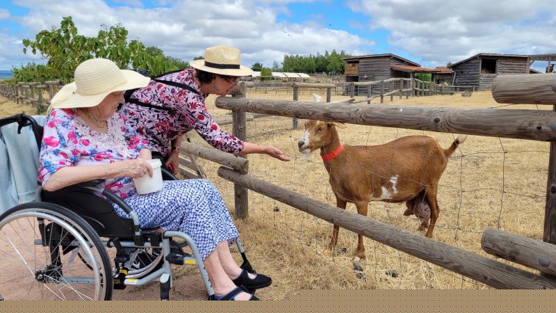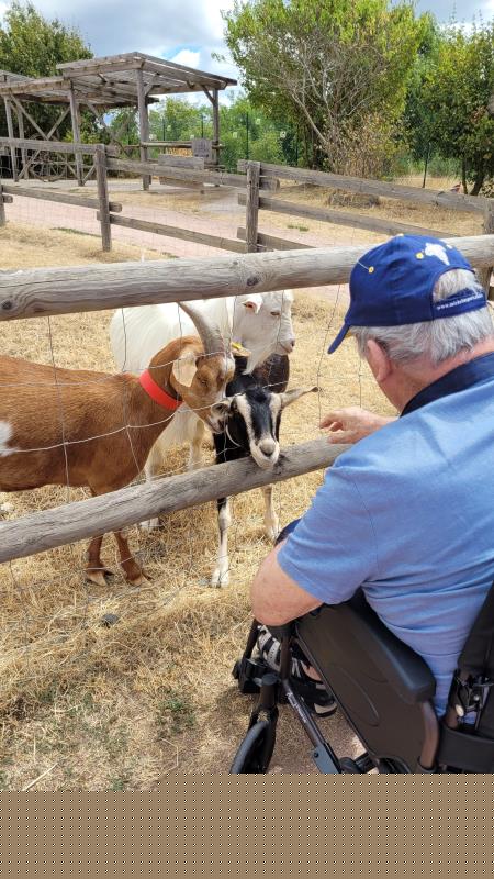 Durant l’été, 7 résidents de l’unité protégée et leurs accompagnateurs, ont profité d’une sortie à la Ferme de la Moulerette située à Montpeyroux. Ils vous racontent leur journée.