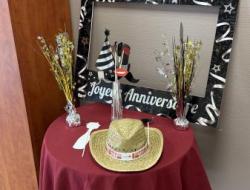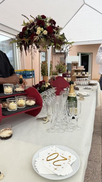 Après les mots de bienvenue de Denis, l’animateur, annonçant le déroulement de l’après-midi et les différentes « attractions » ouvertes à tous : buffet sucré, jeux pour les enfants, stand de barbe à papa, grands jeux en bois, photobooth, exposition sous forme de posters (1 par année) illustrant la vie de la Résidence, articles de presse, albums photos, journaux de l’établissement, les mots d’encouragements, de soutien et de reconnaissance de M. PERRIN maire de Pont-du-Château et de Mme LANDREVIE 1ère adjointe, et de Mme PASSARIEU et M. DERRE conseillers départementaux, s’en est suivie la prise de parole de la directrice de la Résidence. Mme ALVES a présenté un bref historique de la Maison et a tenu à exprimer une attention particulière aux résidents, aux familles, aux bénévoles, aux partenaires, tout en soulignant la richesse du travail de son équipe et la valeur de l’engagement de chacun tourné vers le bien-être des résidents.