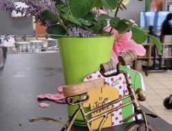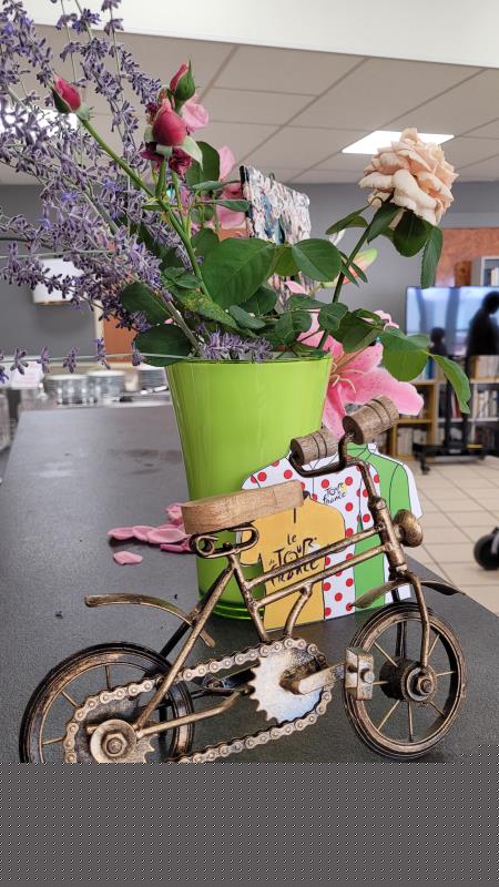 Tous ces messages d'encouragement étaient accompagnés d'un vélo miniature et d’un tableau fleuri.